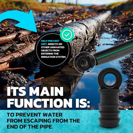 Suinga 16-mm-Tropfverschlussstopfen, schwarz: Tropfverschlussstopfen für 16-mm-Schläuche (kein Klebeband). Aus Polypropylen. Marke: Suinga. Farbe: Schwarz. Wird in Gartenbau und Landwirtschaft verwendet, um das Durchsickern von Wasser durch 16-mm-Tropfschläuche zu verhindern. Packung mit 10 Stopfen der Marke Suinga.
