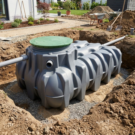 Der Tank hat ein Fassungsvermögen von 7500 L, ideal zum Sammeln und Speichern von Regenwasser.