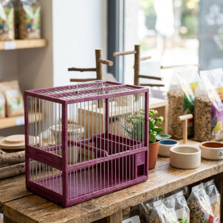 Vogelkäfig mit brauner Tür und großer Größe. 23,5x13x20cm. Produkt hergestellt in Spanien. Hochwertiges Material.