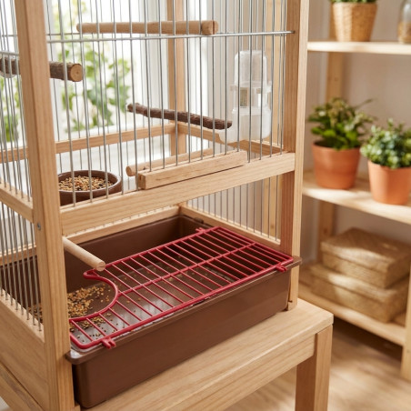 Dieses Gestell ist mit kleinen Vogelkäfigen kompatibel.