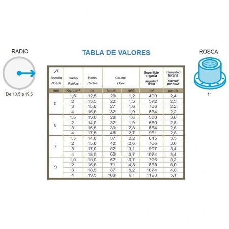 1'' threaded circular sprinkler , range 12.5 to 19.5 meters