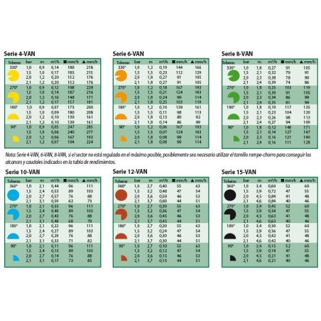 The recommended operating pressure for 12VAN nozzles is 1 to 2.1 bar.