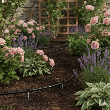 Parfait pour mon potager de 30 m2 f mis des goutteur reglable jaune et des raccords cannelés. Le tout branche sur une pompe.