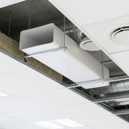 The rectangular design optimizes airflow with lower pressure drop, is more durable, and takes up less space, making it easier to install in narrow areas such as false ceilings.