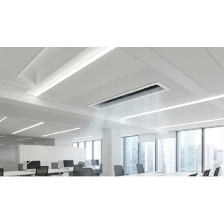 Can it be installed on plasterboard ceilings? Absolutely. Its dimensions and fixing system make it compatible with plasterboard ceilings and other technical ceiling systems.