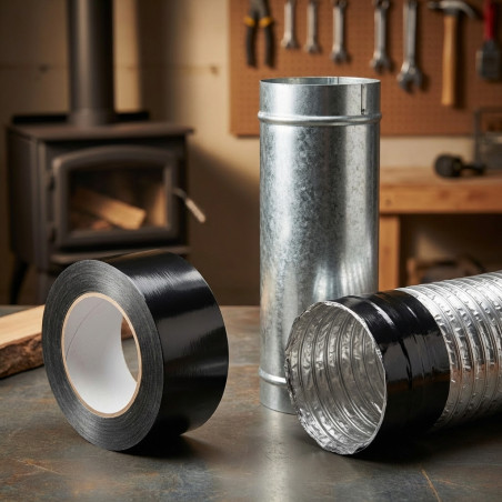 Measuring 25 meters in length and 50 mm in width, this tape provides ample and efficient coverage. Its advanced black aluminum formulation not only gives it a discreet and elegant finish, ideal for visible applications, but also provides exceptional heat resistance up to 120°C. This makes it indispensable for sealing air conditioning ducts, ventilation systems, and especially for applications around chimneys and stoves, where high temperatures are a constant.