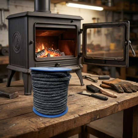 Black Round Fiberglass Gasket Roll 6 mm 25 m: Effectively seal stoves and fireplaces with this high-strength fiberglass gasket. It withstands extreme temperatures, ensuring a watertight seal and optimizing the performance of your equipment. Ideal for a professional and long-lasting seal.