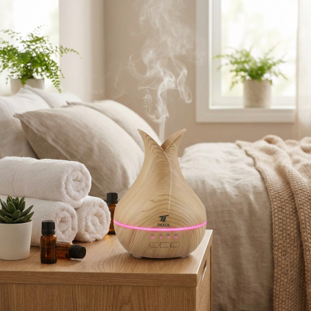 Transform your home into an oasis of well-being with our 120ml Aromatherapy Humidifier. This elegant essential oil diffuser not only improves air quality but also creates a relaxing and inviting atmosphere thanks to its soft LED light. With a compact design of 11.7 x 16cm, it blends seamlessly into any space, whether it's your living room, bedroom, or office. Enjoy up to 6 hours of continuous diffusion thanks to its programmable timer, allowing you to personalize the experience to suit your needs. Ideal for those seeking stress relief, improved concentration, or simply a fragrant and refreshing environment.