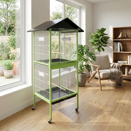 The aviary has 2 zones so that the birds can move freely.