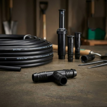 This tee is specifically designed for Rain Bird's SPX-FLEX flexible pipe.