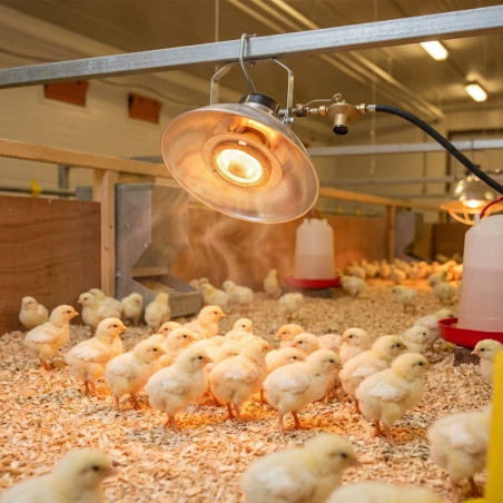 Infrared radiator that efficiently emits heat towards the floor with reduced gas consumption. Ideal solution for raising livestock in small spaces and quick to implement.