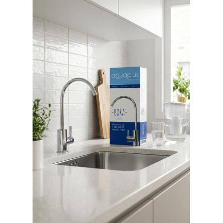 High quality faucet made of strong and durable stainless steel, with electroplating for rust and corrosion resistance. Its elegant design and smooth operation make it a perfect decoration for your kitchen. It features a sleek dual-switch design for effortless flow and easy control of hot and cold water, as well as being compatible with underfloor water filter systems.