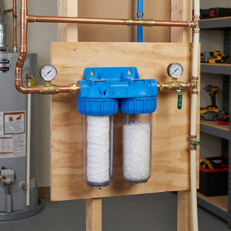 Double container for 10 filters, reinforced brass connection. Maximum pressure 6 bars. Temperature from 4 to 45ºC