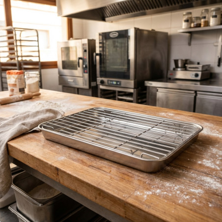 * **High Quality Material:** Made of strong and durable stainless steel. * **Generous Dimensions:** Measuring 40.5 x 30.5 cm, they offer ample workspace. * **Extreme Versatility:** Suitable for use in oven, refrigerator and freezer. * **Integrated Grille:** Facilitates air circulation for even cooking and cooling. * **Hygiene and Easy Cleaning:** Smooth, non-porous surface, dishwasher safe. * **Professional Design:** Ideal for home and professional use. * **Product Reference:** LA15567