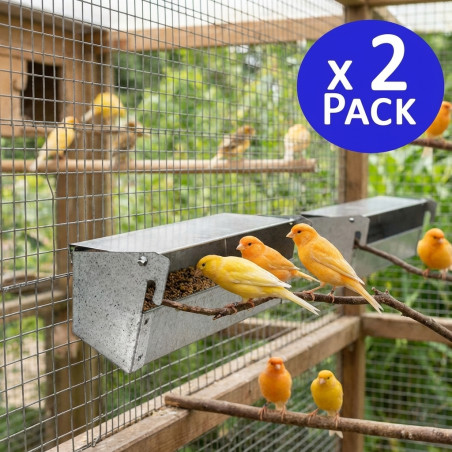 Feeder for canaries or other birds made of 22 cm galvanized sheet metal. 2 units. Product made in Spain. High quality material.