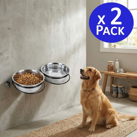 This practical dog feeder with a simple stand to function as a feeder - waterer has a capacity of 1.75 liters in each bowl. Its stand is very stable as it is fixed directly to the wall and its installation is very simple. Capacity. Ø21 cm. Measurements. 21 x 22 x 7 cm. Also used as a waterer for animals. Pack of 2 high quality feeders made in Spain.