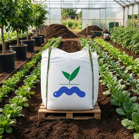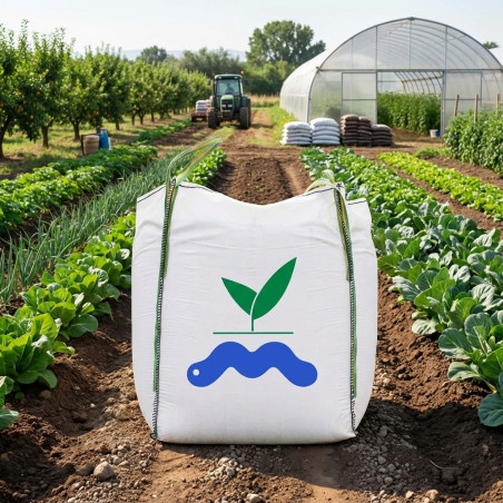 Organic fertilizer suitable for organic farming obtained from earthworm droppings. They help the growth and development of all types of plants, improving the soil and caring for the environment. Worm humus is an organic product that results from the transformation of animal manure carried out by the California red worm. These are very voracious decomposing worms that transform organic matter into nutrients with the help of bacteria and fungi. It serves as a substrate for seedbeds (we recommend mixing with coconut fiber). Big Bag of 700 kilos.