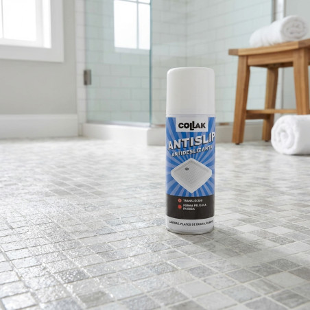 Epoxy varnish spray for direct application on different surfaces without the need to use any previous primer. Provides an excellent long-lasting anti-slip effect. Completely colourless. Enamel especially indicated for touch-ups and painting surfaces to which we want to give a non-slip finish, whether ceramic, stoneware, wood... Good anti-slip power, quick drying. Excellent outdoor durability. High hardness and flexibility. Excellent adhesion. The surface to be painted must be clean, dry and free of any type of contaminant. Clean rust and scale with a wire brush. Remove grease stains with solvent. On plastics or galvanised steel apply a specific primer to ensure perfect adhesion. Shake the spray vigorously for 2 minutes after the mixing balls sound. Spray from a distance of 25/30 cm, applying thin and quick layers, first horizontally and then vertically. Once the operation is finished, invert the can and press until only gas comes out to clean the button. Store in a dry place at a temperature between 10 and 25 ºC. Shelf life: Minimum 3 years in its original closed container stored under normal temperature and humidity conditions. Extremely flammable product. Do not heat the aerosol. Keep it away from any source of sparks or heat.