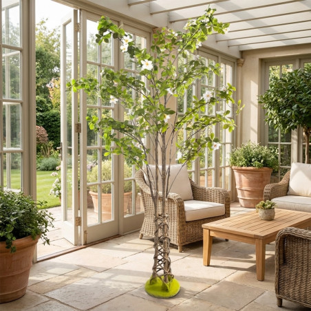 Standing at an impressive 230 centimeters tall, this artificial tree trunk becomes a spectacular focal point in spacious living rooms, office lobbies, covered terraces, or shaded gardens. Its design faithfully reproduces the texture and color of a real tree trunk, bringing an unparalleled dimension of authenticity to your décor.