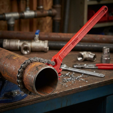 Includes a 55cm chain , adaptable to different pipe diameters, allowing for precise adjustment and versatile use in domestic and industrial installations.