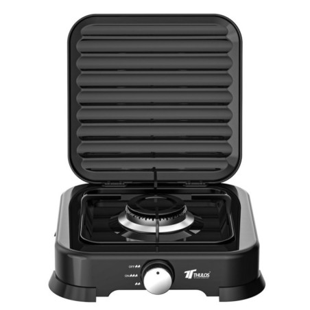 TH-GS61 Portable Gas Stove: Cook conveniently anywhere. Stainless steel body, compatible with butane/propane, and features piezoelectric ignition. Includes lid. Ideal for camping and auxiliary cooking.