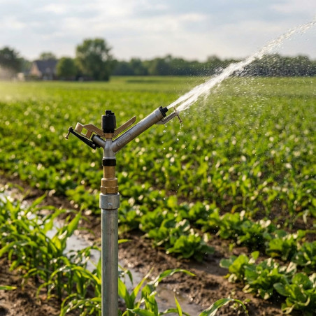 Range 16 to 29 meters. Working pressure 1.5 to 5 bar. Connection 1 1/2 female thread. Circular irrigation angle 360º. Agricultural sprinkler made of high quality metal, it is characterized by its hardness and durability. LaTiendadelJardin offers you the widest range of agricultural irrigation systems on the market so that you can always use the ideal model that best suits your needs.