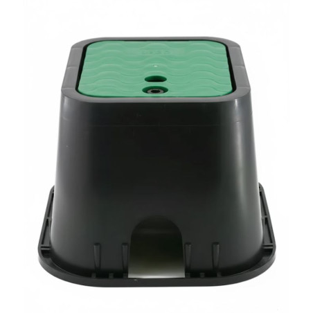 This valve box stands out for its rectangular shape, ideal for housing one or more solenoid valves, allowing for a clean and tidy installation. It is made of durable polyethylene with UV treatment to withstand sun, rain, and temperature changes. Its reinforced lid provides easy access to the interior for inspections, purging, maintenance, or repairs of the irrigation system.