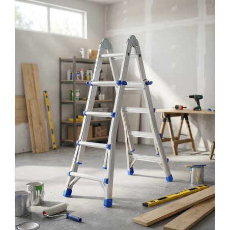 Multi-position design adaptable to every task: This telescopic articulated ladder allows for multiple configurations: straight, double, or platform. Ideal for professionals and DIY enthusiasts who need total flexibility.