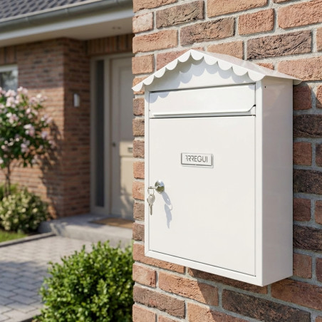 Robust and elegant white steel wall-mounted mailbox, ideal for communities. It offers robust security with an included lock and high weather resistance.