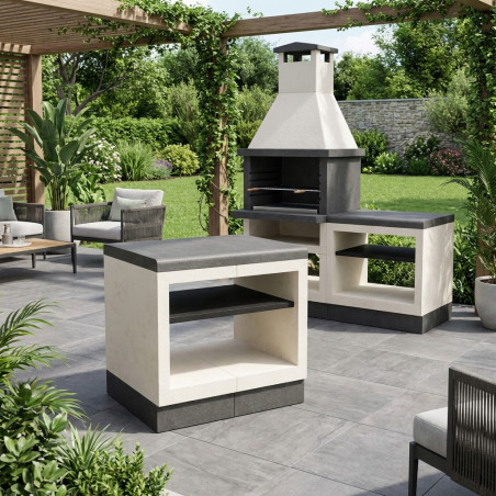 This kit has been designed with durability and aesthetics in mind. Its base, available in attractive color combinations (Black/White), ensures optimal resistance to outdoor weather conditions, guaranteeing that its appearance remains impeccable year after year. It's the key piece you've been looking for to elevate the functionality and design of your outdoor gourmet corner.