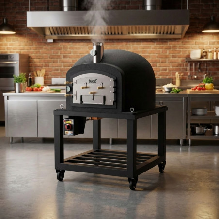 Kitaway professional gas oven (120x120x170 cm) in black, ideal for high performance. Includes a robust base and pressure gauge for precise temperature control.