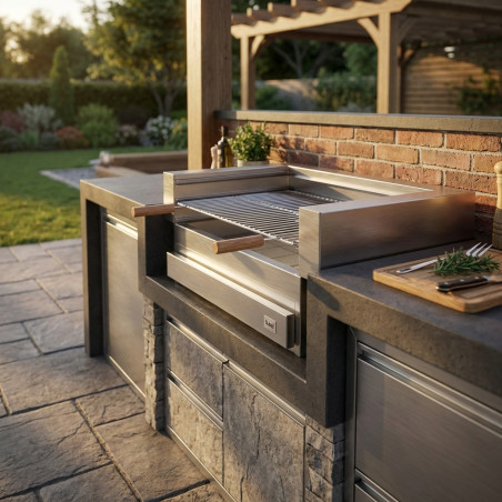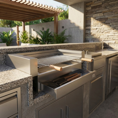 Its main advantage is its integration with the Kitaway modular system, allowing for a modular and personalized configuration of your outdoor kitchen. Its minimalist design and polished stainless steel finish complement any architectural style, adding a touch of modernity and professionalism to your garden or patio. The ease of opening and closing, along with its solid construction, makes this drawer an indispensable element for any grilling enthusiast who values organization and quality materials.