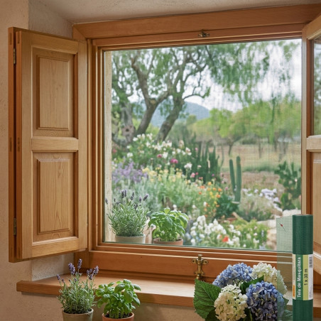 Mosquito netting that provides optimal protection against mosquitoes and insects. Recommended for any type of window. Universal model. Insect protection. Weight: 120 g/m², Thread thickness: 0.35mm , PVC coating: 65%, Threads per inch: 18 x 16. Made in Spain.