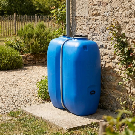 1000 litre Schütz drinking water tank, recommended for indoor and outdoor use, in blue. Length 135 cm, Width 62 cm, Height 171 cm. Made of polyethylene, suitable for food use and with opaque material. Ecological, 100% recyclable. Includes adapter for gas type thread. Consult our technical team if you have any questions. Upper registers: 1 250mm cover with flange, 2 75mm openings with 2'' female adapters. Lower outlet 75mm with 2'' female adapter and 2'' plug.