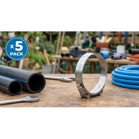 Hose clamp (including strap, housing and screw) made of high strength stainless steel. Salt resistant, anti-rust, anti-corrosion, waterproof, oil resistant. The clamps are sturdy, strong and reliable. Wide adjustable size range: The clamp kit is flexible and ductile with wide adjustable size range. Widely used: The clamps are used to secure hoses, pipes, cables, pipes, fuel lines, etc. Perfect to apply in automotive, industrial, boat/marine, shield, home, etc. both indoor and outdoor. Allows adjustment from Ø 110 to 130 mm. Pack of 5 units.