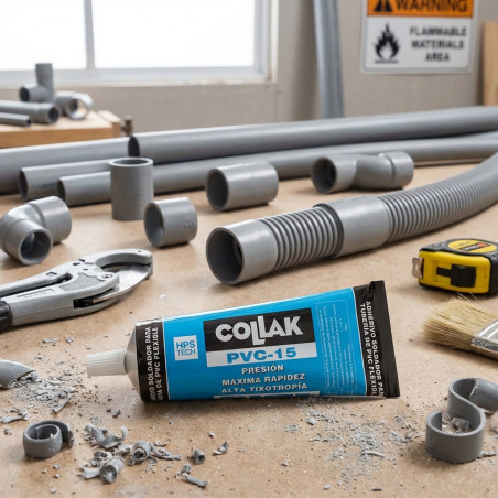 Thixotropic, fast-drying, blow-on adhesive. This welding adhesive is designed for joining flexible PVC pipes and materials. It is suitable for creating strong joints of flexible PVC tubing, couplings, and elbows in pressure systems. This product is FLAMMABLE. Therefore, ensure good ventilation in the work area and avoid any possibility of sparks or fire. For further information, consult the product's Safety Data Sheet.