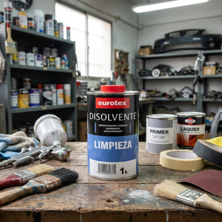 Universal cleaning solvent used for lacquers, primers, fillers and putties, 1 liter. It is a solvent for nitrocellulose that behaves as a universal solvent. It is a high quality, powerful universal solvent with various applications in dilution and cleaning. Used for lacquers, primers, fillers, putties and in general all nitrocellulose specialties. It is the solvent par excellence to bring to application viscosity Primers, Putties, Fillers and in general, all nitrocellulose-based specialties, as well as some synthetic and other types of bases, whose application is by spray gun and a rapid evaporation of the solvent is desired.