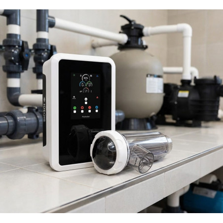 With a production capacity of 12 grams of chlorine per hour (12 g/h), this chlorinator guarantees optimal treatment even under intensive use. It integrates easily into your filtration system, and its operation is quiet and highly energy-efficient, resulting in significant long-term savings.