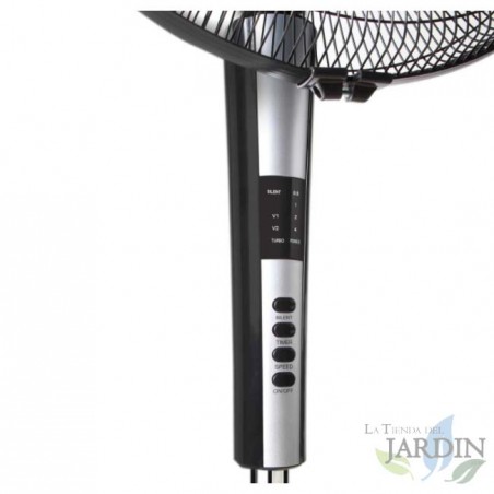 This silent standing fan with remote control from Orbegozo is the perfect solution to keep your home cool and comfortable. With a power of 65 W, it has 2 Turbo Silent speeds to adapt to your needs. In addition, its automatic oscillation guarantees great air diffusion, while its tilting head allows you to direct the airflow where you need it. With 5 blades, a timer of up to 7.5 hours and silver details, this fan offers exceptional performance with an elegant design. Its illuminated LED control panel, safety grille, carrying handle and highly stable round base make it a safe and practical option for any space. With an adjustable height of up to 155 cm, this Orbegozo fan combines functionality and style in a single device.