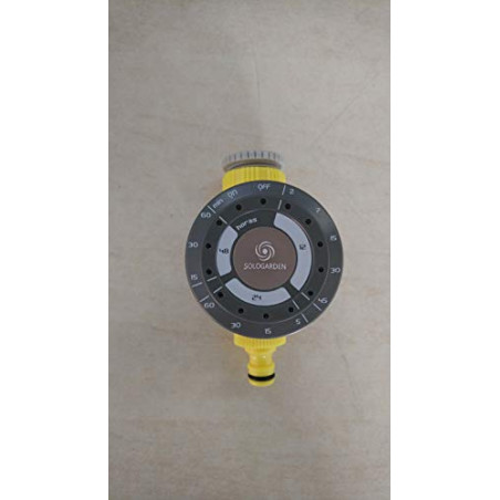 Manual irrigation programmer . It stands out for its simple handling, as all parameters (frequency, duration, delay, etc.) can be adjusted using just one button. 12 pre-designed irrigation programs, adjusted to the typical needs of any drip irrigation. Working pressure: 1-7 bar. Includes universal adapter. Uses 2 AAA 1.5 V batteries (not included). Internal membrane mechanism.
