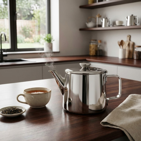 Teapot made of stainless steel. Built-in tea filter: the teapot's internal spout is equipped with a filter that can be used to brew tea directly or to filter out any residue. 1-liter capacity.