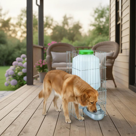Dog waterer with reservoir made of aluminium with an 8-litre container and dimensions 23 x 33 x 46 cm. This high-quality waterer is made in Spain.