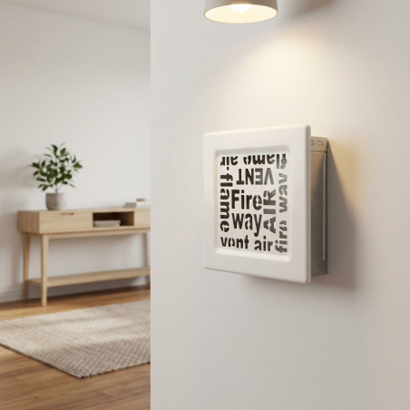 Rejilla Ventilación Fija Blanca Serie Alfabeto 17x17 cm. Diseñada con un estilo moderno y minimalista, incluye premarco para una instalación sencilla y asegura una circulación de aire óptima en conductos. Fabricada con materiales de alta calidad para garantizar durabilidad y resistencia.