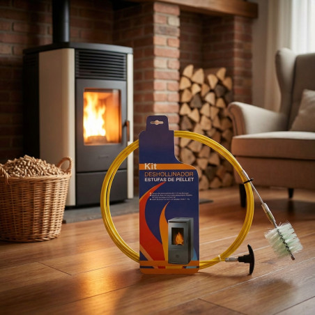 Si bien está optimizado para estufas de pellets, su diseño general para la limpieza de conductos de humos puede ser útil en chimeneas de leña, siempre y cuando el diámetro y la longitud sean compatibles.