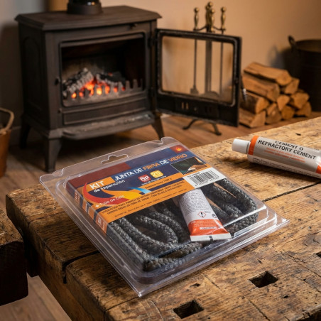 Mantén tu estufa funcionando de manera eficiente y segura con nuestra Junta de Fibra de Vidrio Negra de alta calidad. Diseñada para ofrecer una estanqueidad excepcional en la puerta de tu estufa, este kit completo incluye 2,5 metros de junta de fibra de vidrio de 10 mm de grosor y una cola refractaria acrílica específica para altas temperaturas. Olvídate de las fugas de aire y disfruta de un calor óptimo y un funcionamiento más limpio.