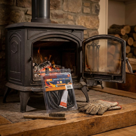 Asegure la máxima eficiencia y seguridad de su estufa con nuestra Junta de Fibra de Vidrio Negra Autoadhesiva. Diseñada específicamente para ofrecer una estanqueidad superior en la puerta de su estufa, esta junta de 10x2 mm es la solución perfecta para evitar fugas de humo, mejorar el aislamiento térmico y optimizar el rendimiento de su equipo. Su instalación sencilla gracias al adhesivo de alta resistencia garantiza un sellado duradero y fiable, protegiendo su hogar y su inversión.
