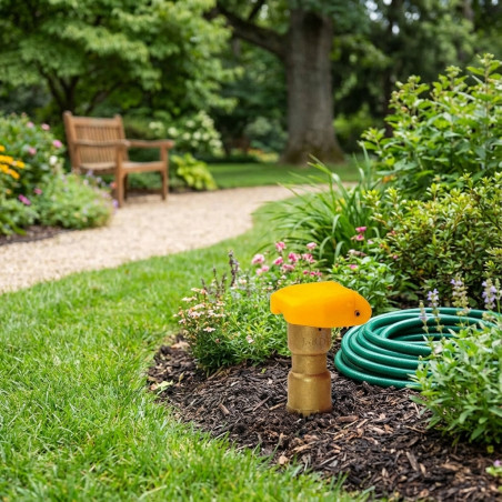 En cualquier tipo de instalación, ya sea un jardín particular o un parque municipal, las bocas de riego permiten disponer de un punto de agua de fácil acceso de forma que se pueda conectar una manguera para proporcionar un riego suplementario. Boca de riego hidrante de acople rápido en bronce 3/4''. Fabricadas en bronce de una sola pieza para mayor durabilidad. Incorpora tapa de termoplástico con muelle que evita la entrada de suciedad en el interior de la válvula. Muelle interno en acero inoxidable para una máxima durabilidad y resistencia a la corrosión. Para la apertura de los hidrantes se utiliza una llave que hay que adquirir aparte (ver productos relacionados).