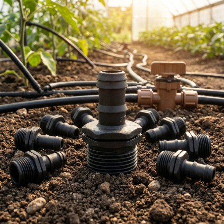 Se utiliza para conectar tuberías de riego por goteo de manera segura y eficiente.