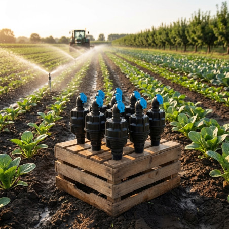 Su uso habitual es para marcos de riego de 8x8 hasta 10x10 en horticultura y en marcos de 5x5 hasta 8x8 como riego sub-arbóreo.