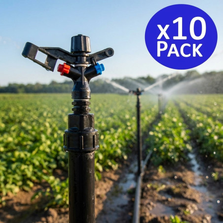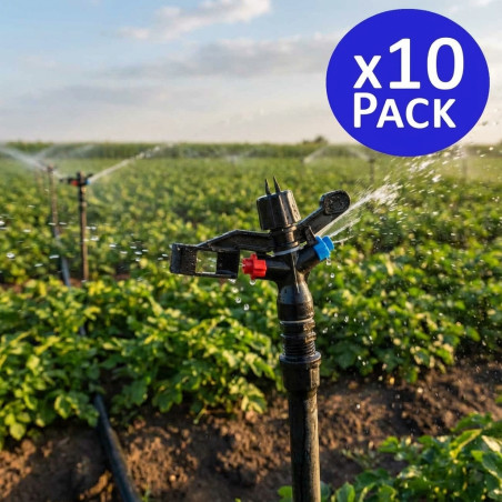 Aspersor 1/2 de alcance 8 a 12 m y ángulo de riego circular 360º.